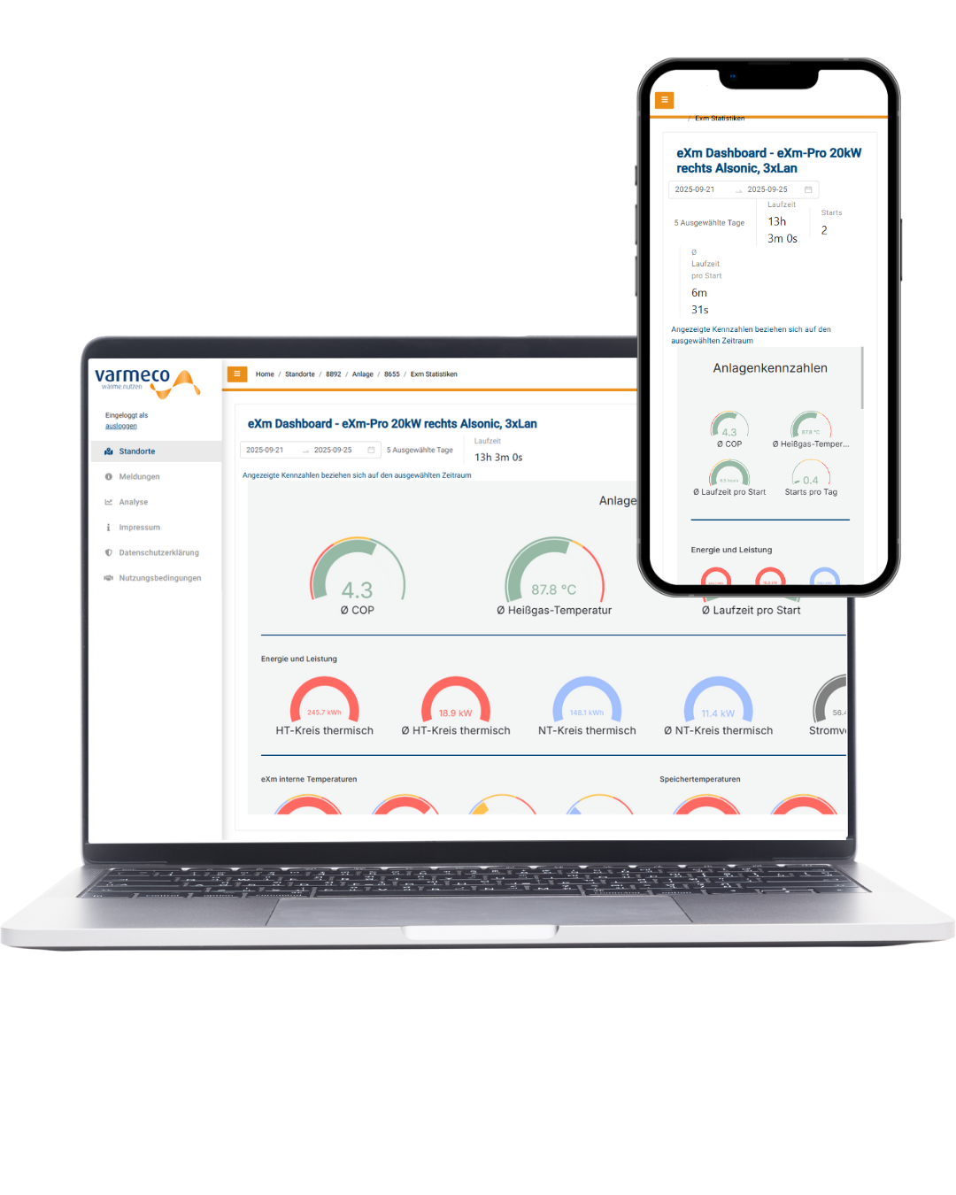 Il varmeco Management Server (VMS) è la piattaforma centrale per la gestione dell'energia, il monitoraggio del sistema e la gestione dei guasti. Con la registrazione continua dei dati e l'analisi precisa dei consumi, supporta lo sviluppo di un sistema di gestione dell'energia in conformità alla norma DIN EN ISO 50001, rendendo visibili i potenziali risparmi e misurabili le ottimizzazioni.