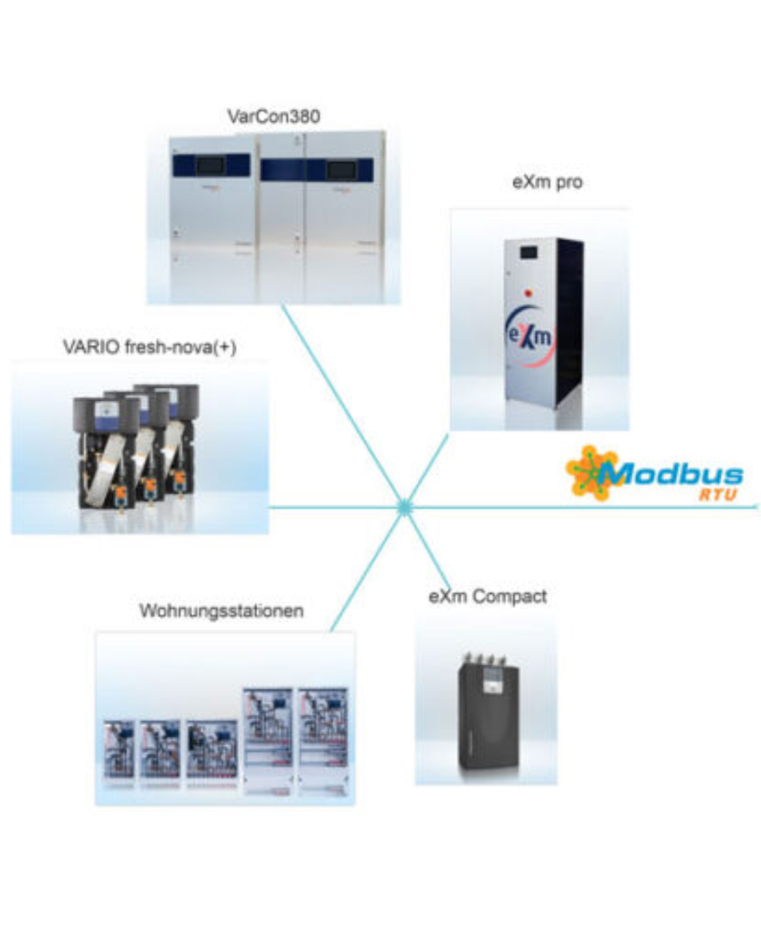 Le interfacce e i gateway BMS standardizzati sono utilizzati per collegarsi ai sistemi di gestione degli edifici esistenti. Il protocollo Modbus RTU garantisce una comunicazione fluida tra i componenti varmeco e i sistemi di controllo di livello superiore.