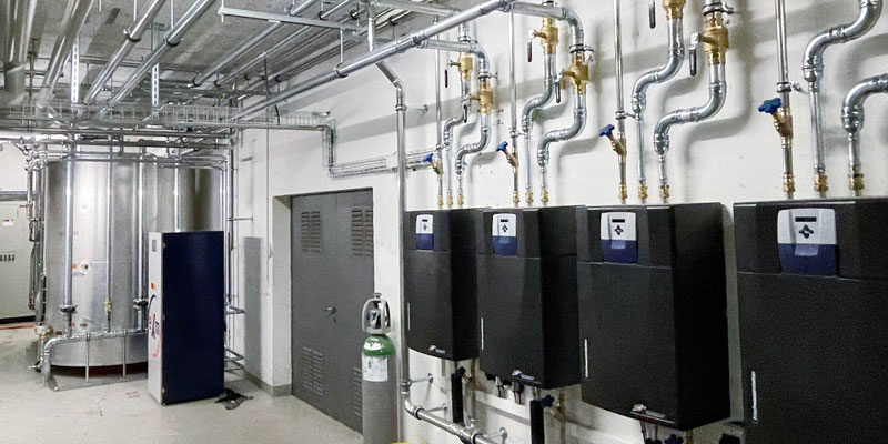Soluzione: Conversione della preparazione dell'acqua calda in scaldacqua istantanei idraulici e integrazione dell'eXergiemaschine.