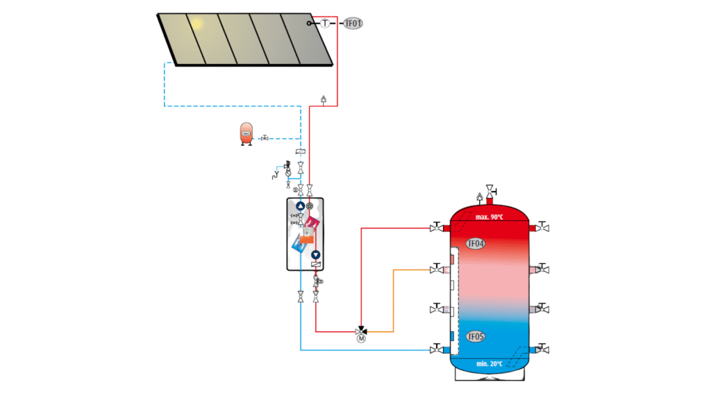 - Kombinierte Delta-T- und Zieltemperatur-Regelung im Solar- und Pufferkreis